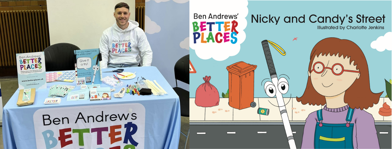 The first book in the series, Better Places Nicky and Candy’s Street, is set for release in February 2023 and follows a young blind girl, Nicky, and her white cane, Candy. When a trip down the street to a friend’s house proves difficult, they turn to the reader to help make the street a better place.