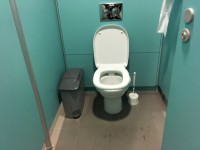 - There is written text and pictorial signage on or near the toilet door.