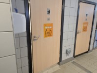 - There is a/are non-infectious waste, open waste paper bin and sanitary disposal units.