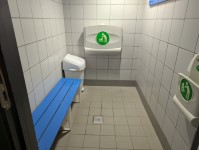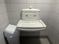 - The facility changing bench is wall mounted.
