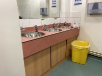 - There is a/are sanitary and general waste (with no lid) disposal units.