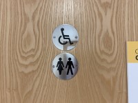 - There is Braille signage on or near the toilet door.