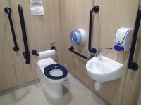 - The dimensions of the accessible toilet are 187cm x 220cm (6ft 1in x 7ft 2in).