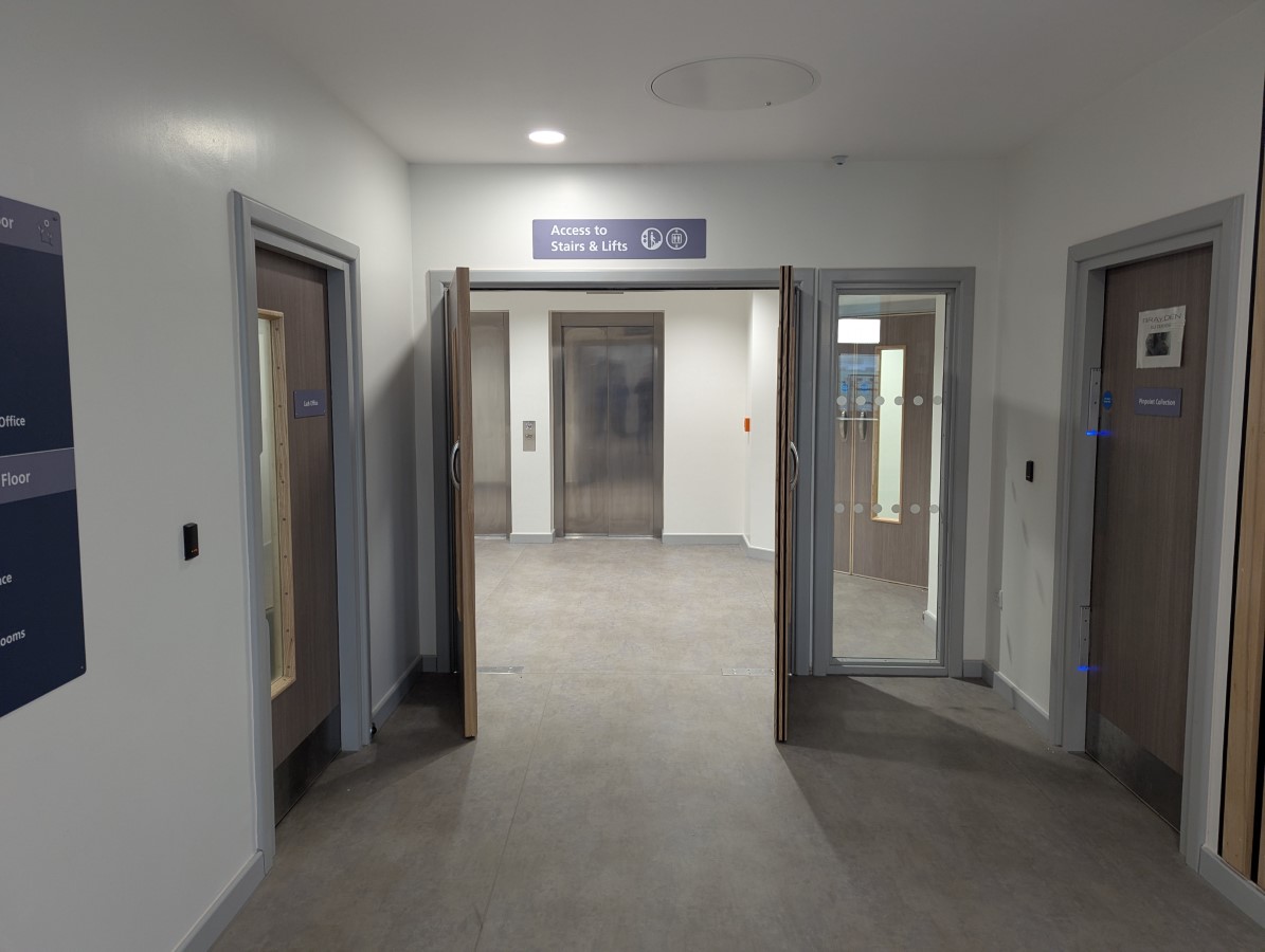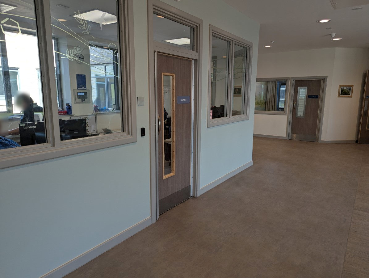 Continue along the corridor and the entrance to Fern Ward is located on the left. - Internally the most accessible route has step-free level access, a lift, manual doors and doors permanently held open.