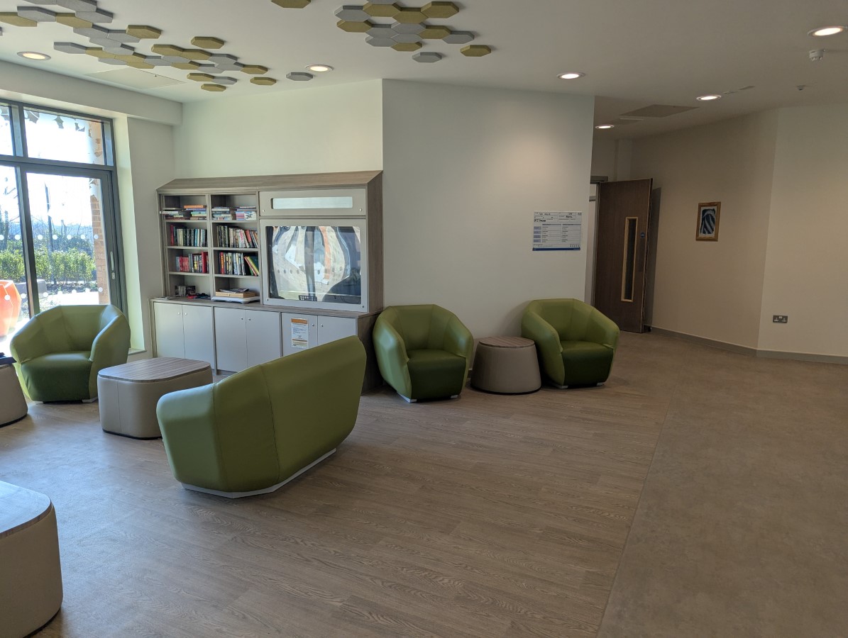 - The lounge is located ahead from the Fern Ward entrance.