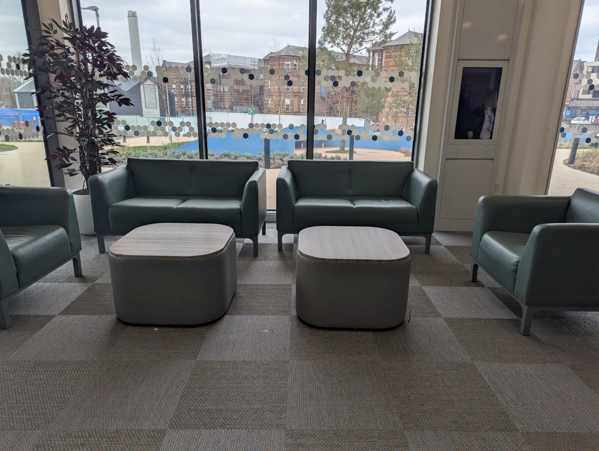 - There is room for a wheelchair user to manoeuvre in the seating area (150cm x 150cm).