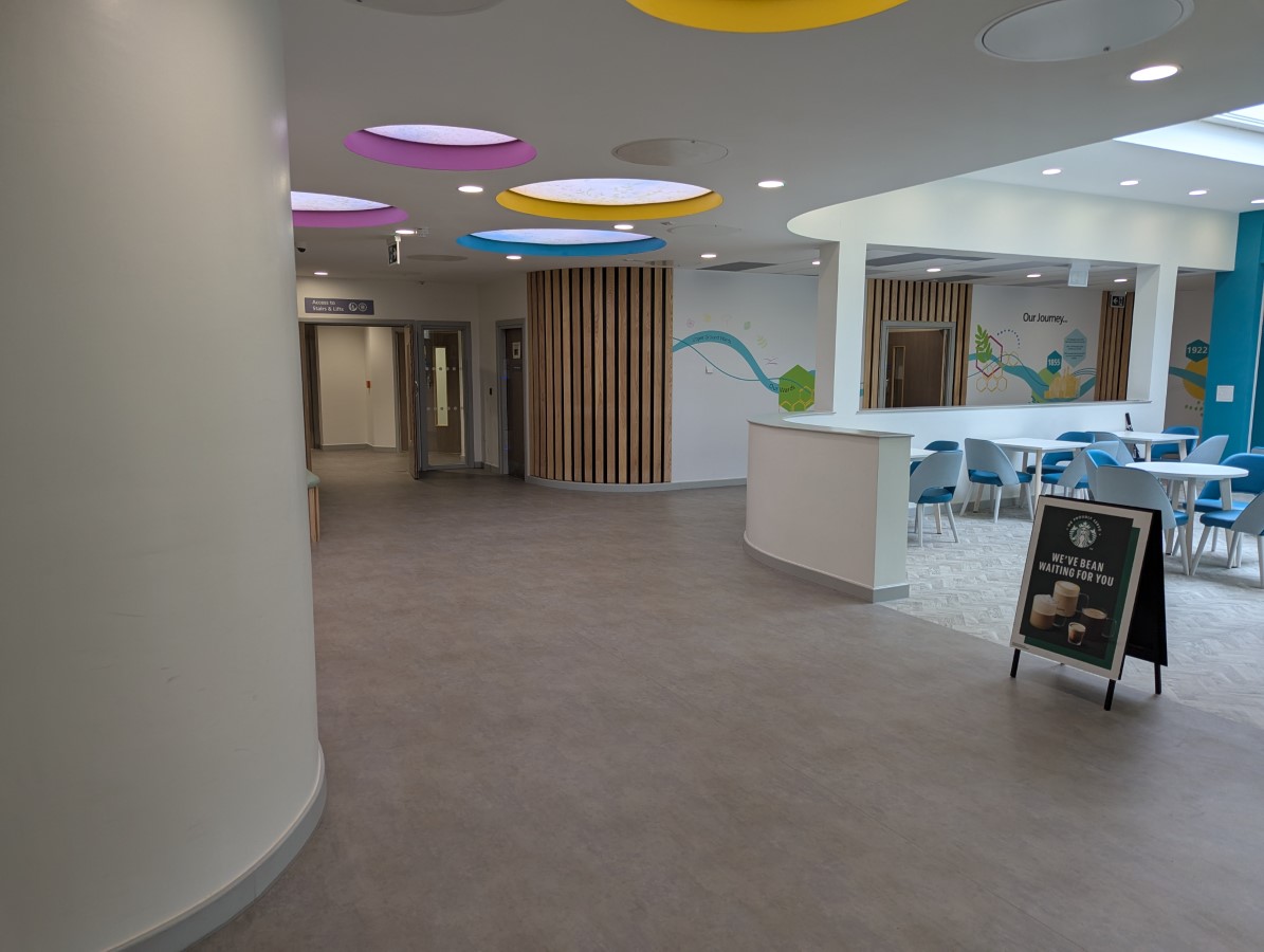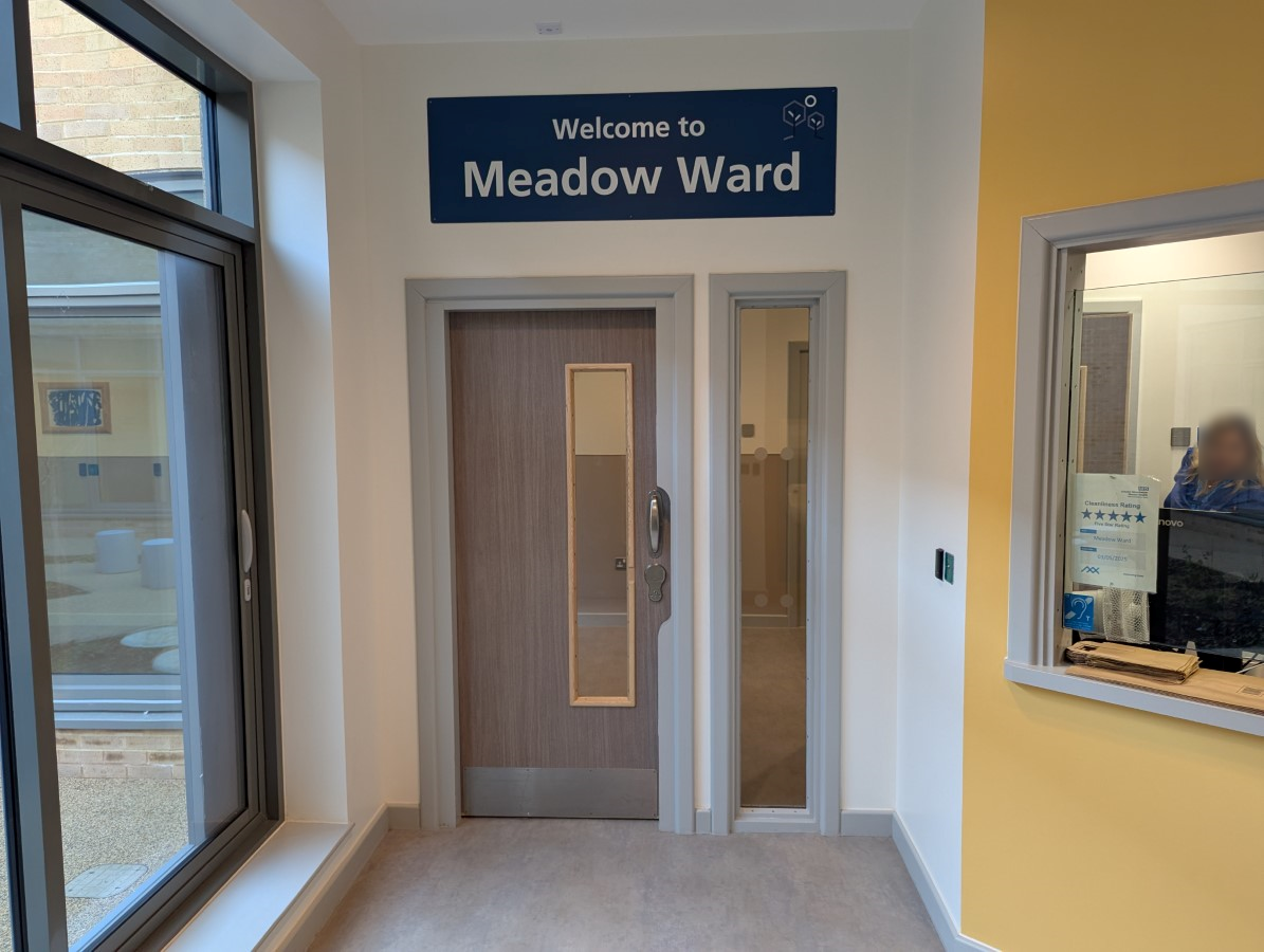 Continue along the corridor and the entrance to the Meadow Ward is located on the left. - Internally the most accessible route has step-free level access, a lift and doors permanently held open.