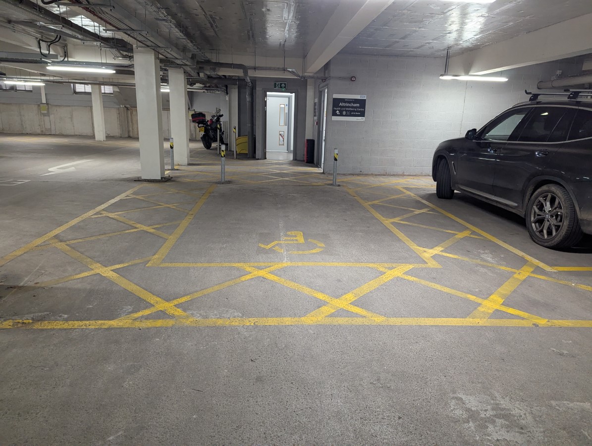 - The nearest designated bay is 4m from the Altrincham Health and Wellbeing Centre lift.