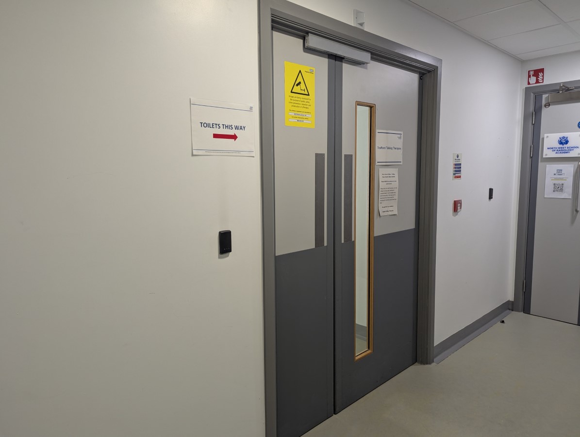 - The male and female step-free toilet facilities are located on the corridor to the right of the Trafford Talking Therapies entrance, on the left hand side of the corridor.