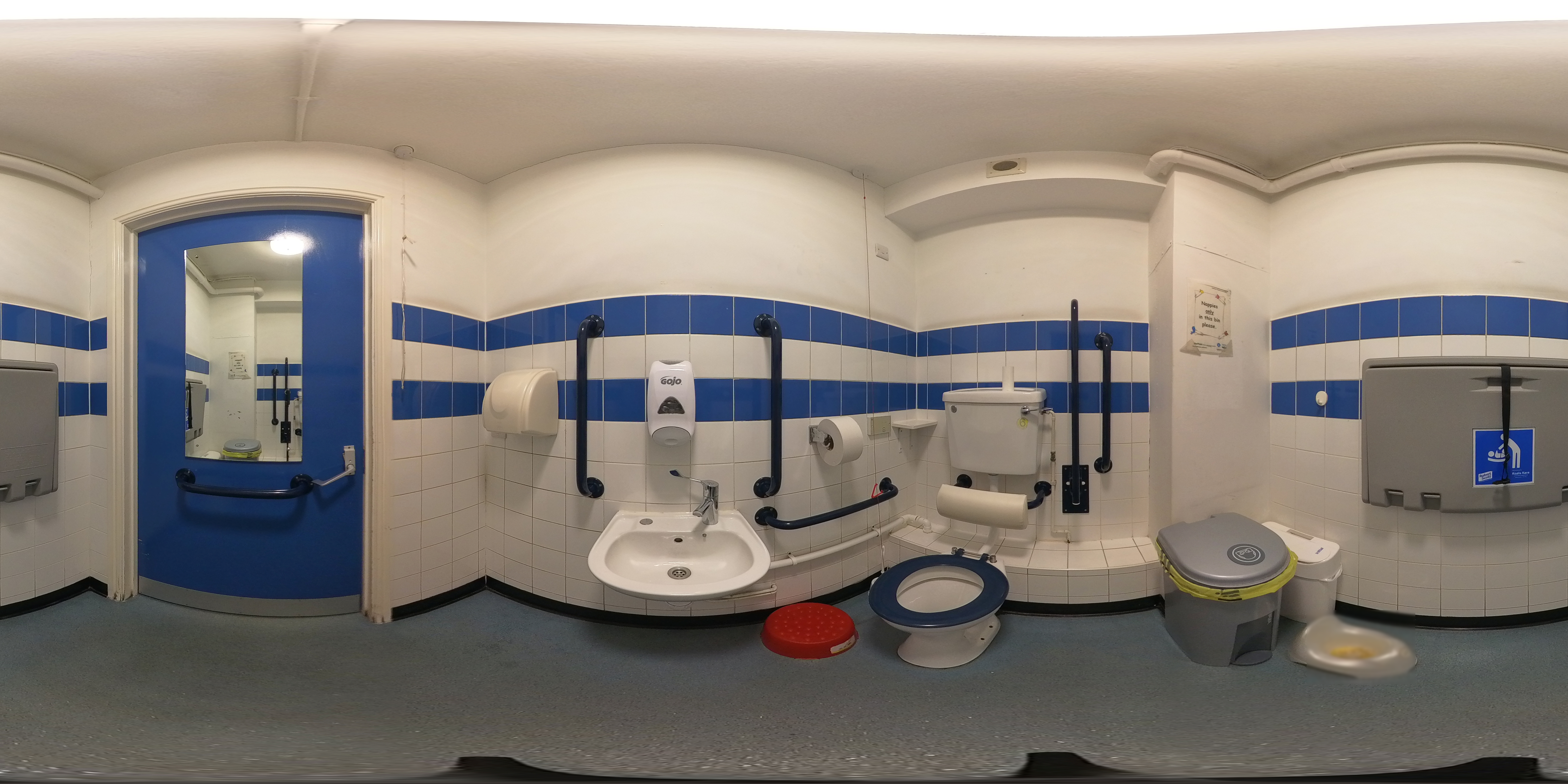 - The toilet with adaptations is located on the lower ground floor, along the corridor ahead as you enter via the accessible entrance.