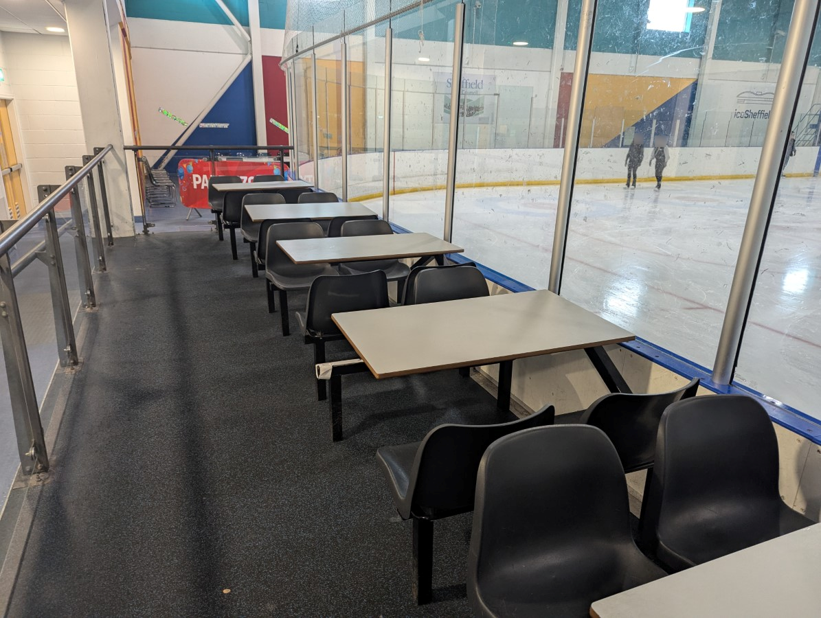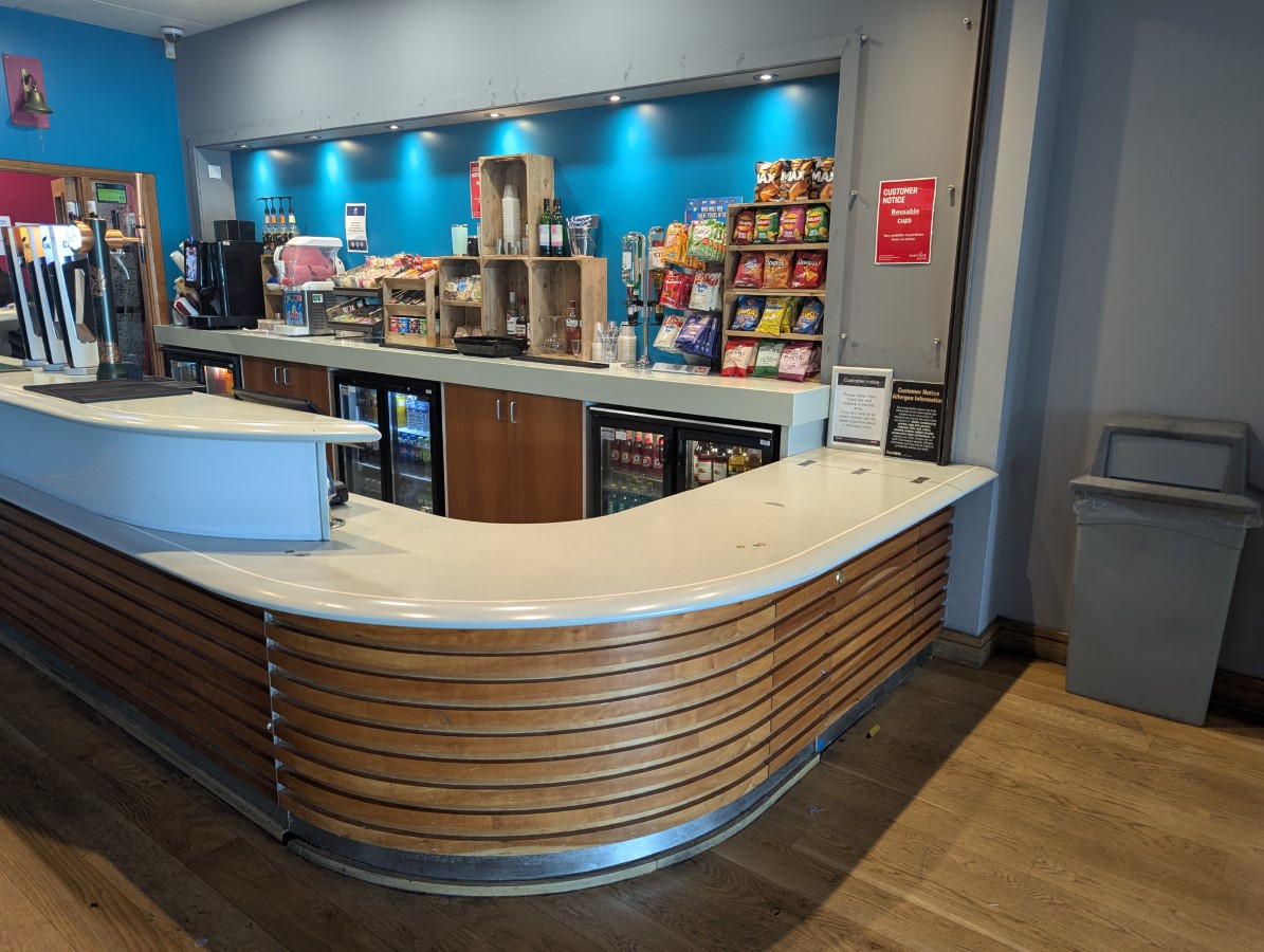 - This area has a counter where food and drink can be ordered, staff who can provide assistance with ordering and numerous seating options.