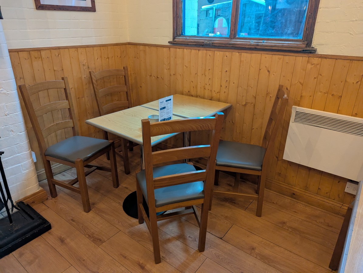 - There is room for a wheelchair user to manoeuvre in the seating area (150cm x 150cm).