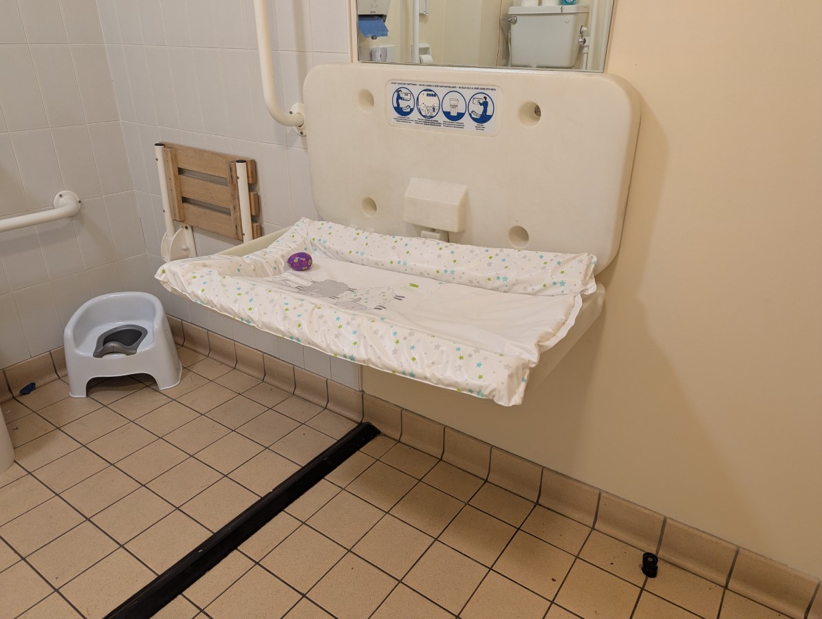 - Parent and baby changing facilities are located within the toilets with adaptations.