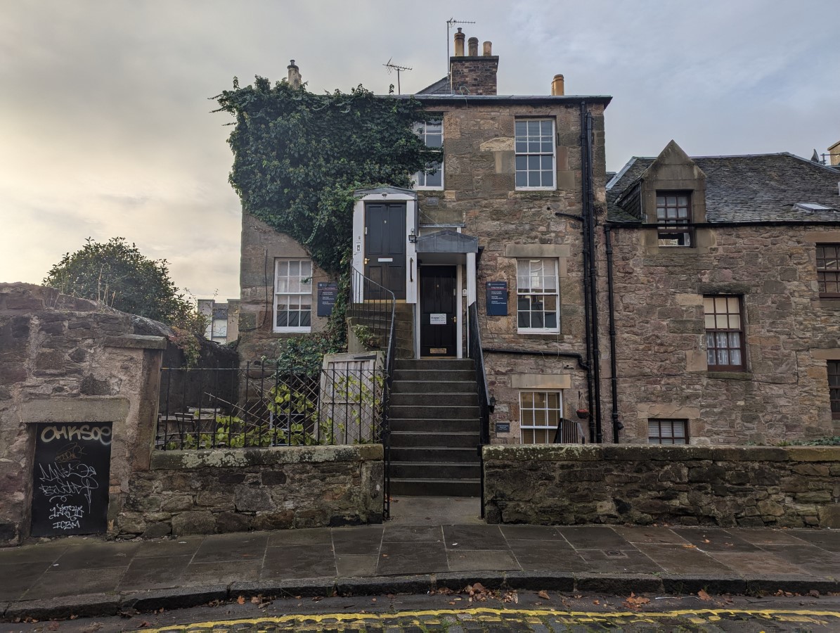 - The rear courtyard entrance is located in the Hope Park Square Courtyard, to the left and accesses the main staircase.