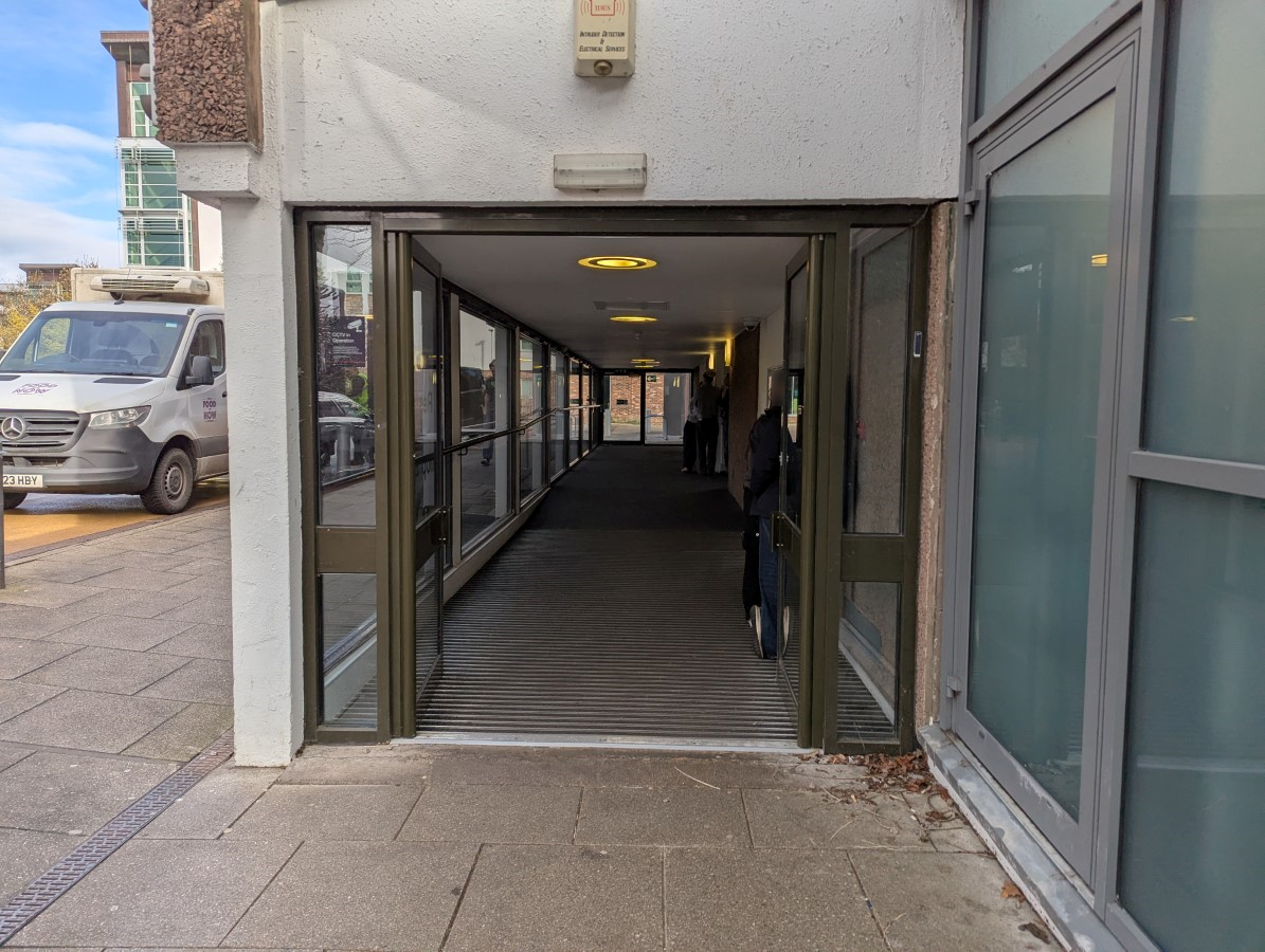 - There are double automatic doors at this entrance.