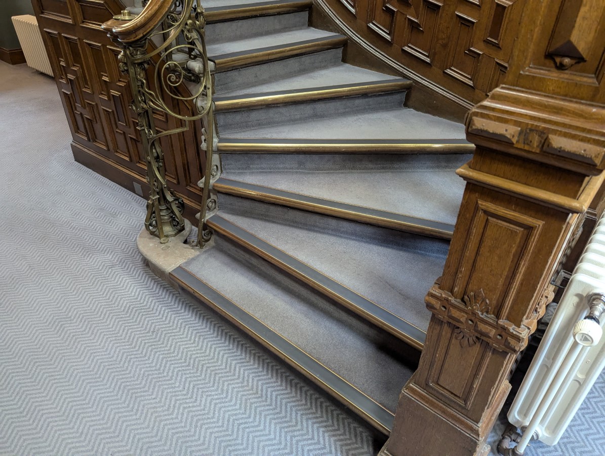 - Floor surfaces along circulation routes consist of a mixture of low pile carpet and laminate, the latter of which is both shiny and patterned.