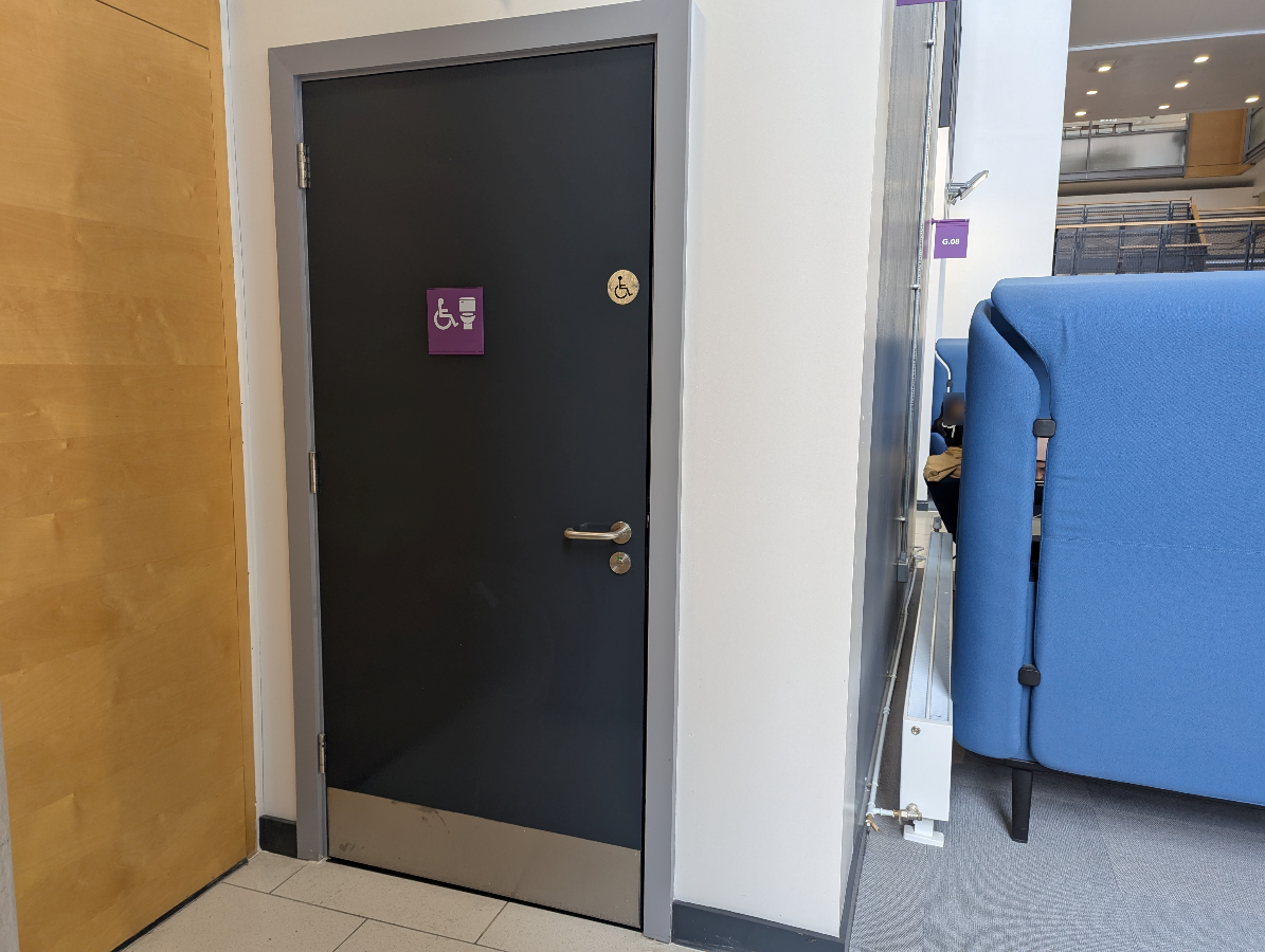 - The toilet surveyed is located on the ground floor, to the rear of Booth St East Building, on the right.