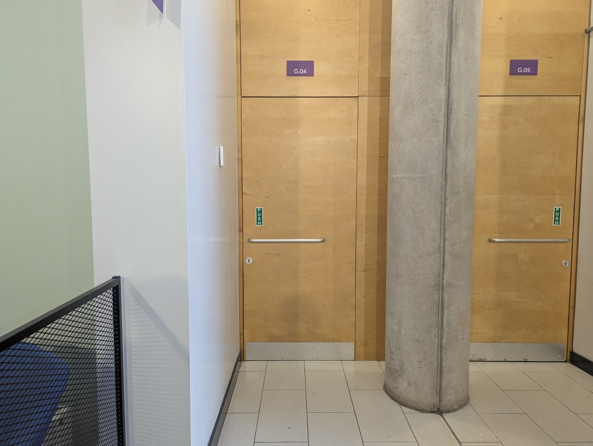 - G.04 is located on the ground floor of the Booth Street East Building, to the rear of the building on the left.