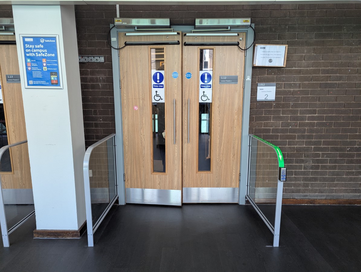 - There is step-free level access into 1.12 Lecture Theatre 2.